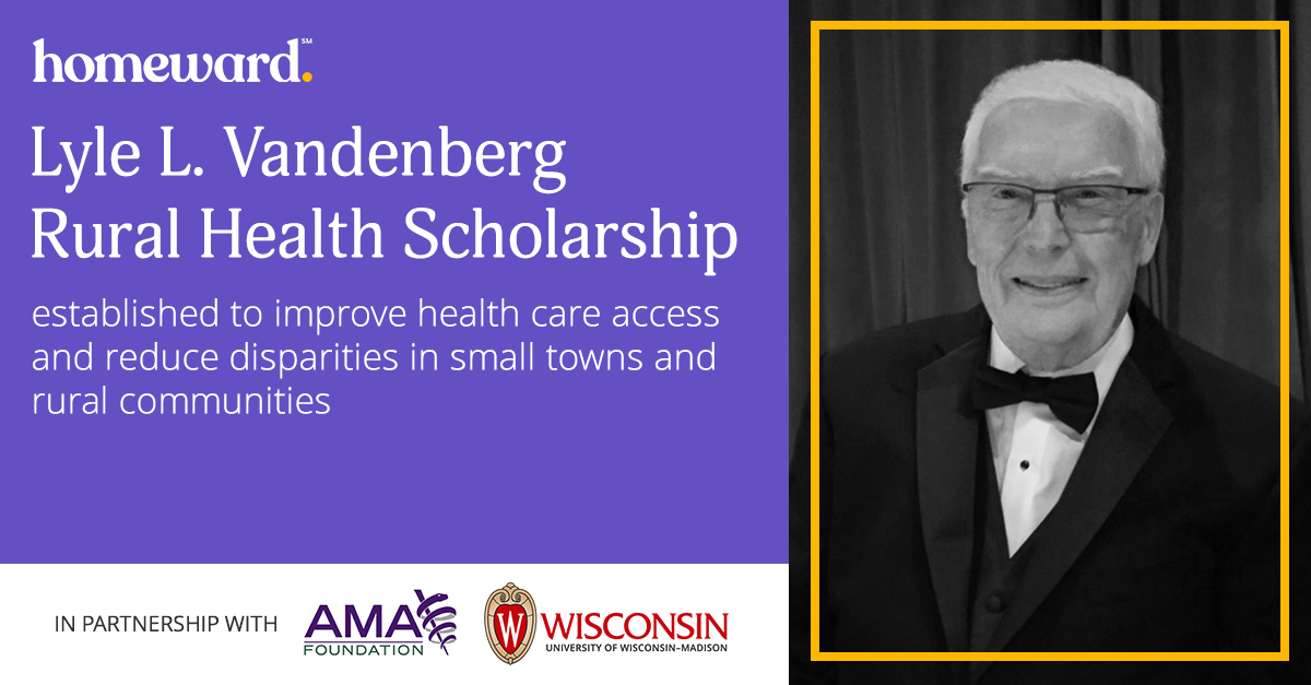“As a community pharmacist, my Dad encountered the unique healthcare challenges faced by many residents living in small towns and rural communities,” said Brian Vandenberg, son of Lyle Vandenberg, General Counsel and Chief Administrative Officer of Homeward, and former American Medical Association General Counsel. “He was ahead of his time, bringing new care models to communities to meet their needs in collaboration with physicians, nurses, and other providers. It is gratifying to establish the Lyle L. Vandenberg Rural Health Scholarship in partnership with his alma mater, the University of Wisconsin-Madison, and the American Medical Association Foundation, as it marries our mission at Homeward to rearchitect the delivery of health and care in partnership with communities everywhere, starting in rural America, and honors my father, who was deeply connected to the local communities where he lived and served.”