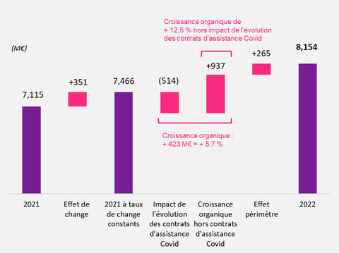 (1) À périmètre et changes constants hors impact de l’évolution des contrats d’assistance Covid (2) À périmètre et changes constants (3) Soumis à l’approbation des actionnaires à la prochaine assemblée générale du 13 avril 2023. Le détachement du coupon interviendrait le 21 avril 2023 pour une mise en paiement le 25 avril 2023
