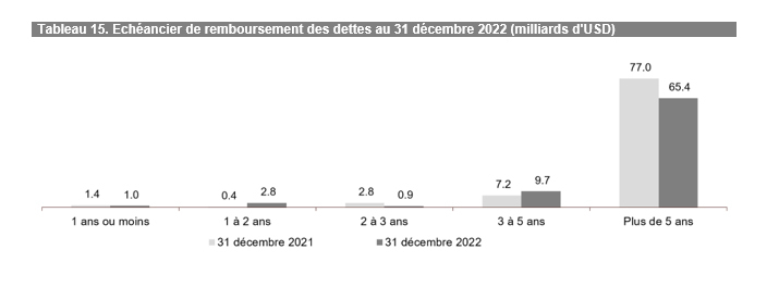 Notre objectif visant à maximiser la création de valeur à long terme repose sur les trois domaines que nous ciblons : affectation rigoureuse des ressources, solide gestion des risques et structure de capital efficace. Nous avons continué de réaliser un solide flux de trésorerie disponible au cours de l’EX22, générant environ 8.5 milliards d’USD, ce qui nous a permis de progresser considérablement dans notre démarche de désendettement. La dette brute a diminué de 8.9 milliards d’USD pour atteindre 79.9 milliards d’USD, ce qui se traduit par un endettement net de 69.7 milliards d’USD et un ratio endettement net/EBITDA de 3.51x au 31 décembre 2022.