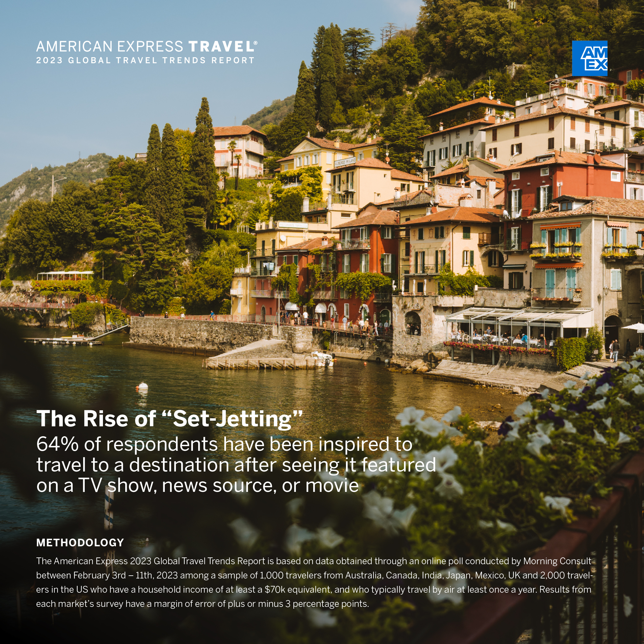- A ascensão do “Set-Jetting”: filmes populares, séries de TV e mídias sociais estão inspirando as pessoas a viajarem para os lugares que são exibidos nas telas, como Itália, Paris, Yellowstone e Londres