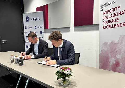 Strategic Partnership for sustainable circular economy: Andreas Krinninger, member of the Executive Board of KION GROUP AG, and Elewout Depicker, VP Commercial and Corporate Development EMEA of Li-Cycle Corp. will be working together in future on the recycling of lithium-ion batteries. (Photo: Business Wire)