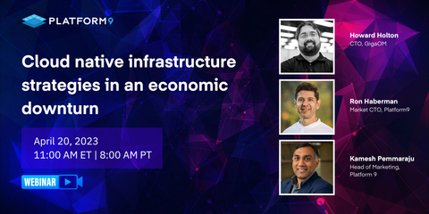 MOUNTAIN VIEW, Calif.--(BUSINESS WIRE)--Platform9, the leader in helping enterprises with a better way to go cloud native, today announced that they will be joined by GigaOm in the upcoming webinar “Cloud native infrastructure strategies in an economic downturn.” Howard Holton, GigaOm CTO, will be joined by Ron Haberman, Platform9’s Market CTO, as they share strategies to optimize operational costs and channel savings toward growth initiatives.