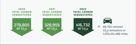 Announces significant increase in MT of CO2e sequestered compared to 2021