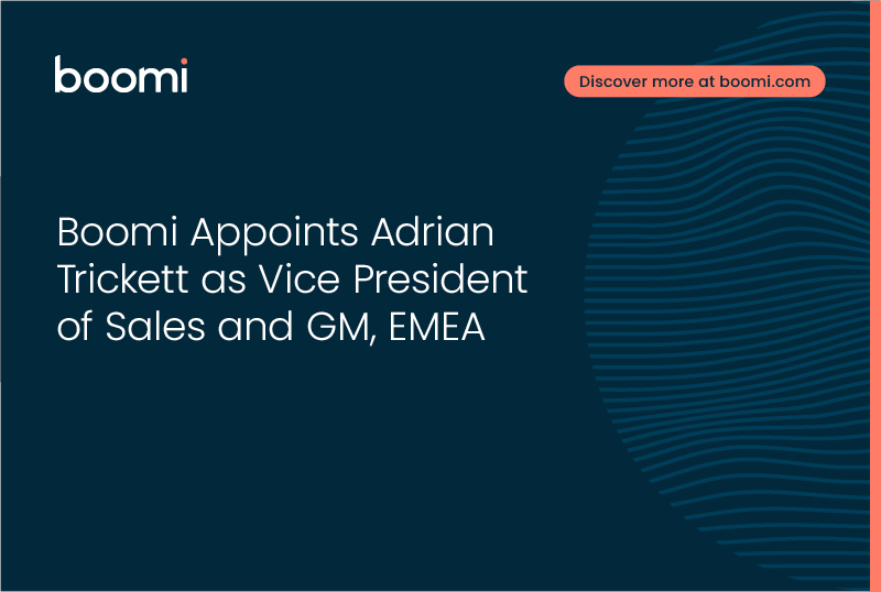 CHESTERBROOK, Pa.--(BUSINESS WIRE)--Boomi™, toonaangevend op het gebied van intelligente connectiviteit en automatisering, heeft vandaag de benoeming aangekondigd van Adrian Trickett tot Vice President Sales en General Manager (GM), EMEA. Als hoofd verkoop en GM voor de markten van Europa, het Midden-Oosten en Afrika (EMEA), zal Trickett toezicht houden op de regio en is hij verantwoordelijk voor het behalen van omzet- en winstdoelstellingen, het uitvoeren van de go-to-market-strategie van de organisatie en het uitbreiden van het klantenbestand in de regio.
