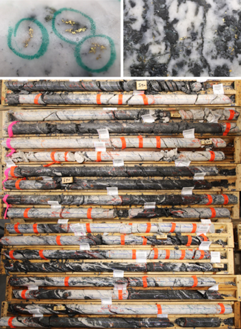 Table 1: Iceberg Drilling Highlights Note that the host structures are interpreted to be steeply dipping and true widths are generally estimated to be 70% to 95% of reported intervals.1 A structurally complex interval containing possible oblique veining where true widths could be as low as 30%; further drilling at varying orientations is required to accurately apply a true width to this interval. Infill veining in secondary structures with multiple orientations crosscutting the primary host structures are commonly observed in drill core which could result in additional uncertainty in true width. Composite intervals reported carry a minimum weighted average of 1 g/t Au diluted over a minimum core length of 2m with a maximum of 4m consecutive dilution. Included high-grade intercepts are reported as any consecutive interval with grades greater than 10 g/t Au. Grades have not been capped in the averaging and intervals are reported as drill thickness. |