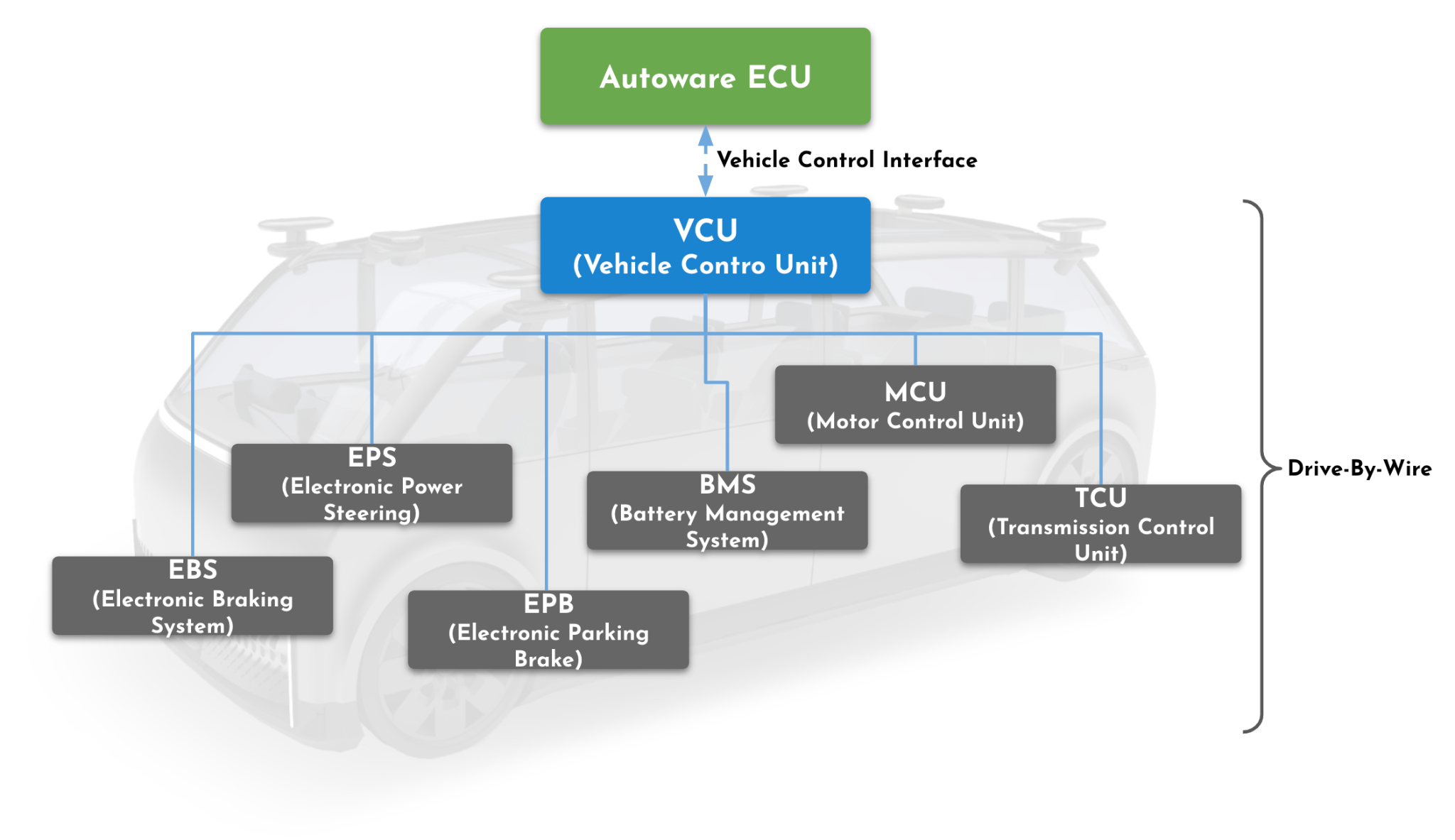 VCUは自動運転ソフトウェアの制御指示に従い車両を制御し、車両のハードウェアが故障した際は安全に停止するために故障を検知しMRM (Minimum Risk Maneuver)を発動する役割を持つユニットです。