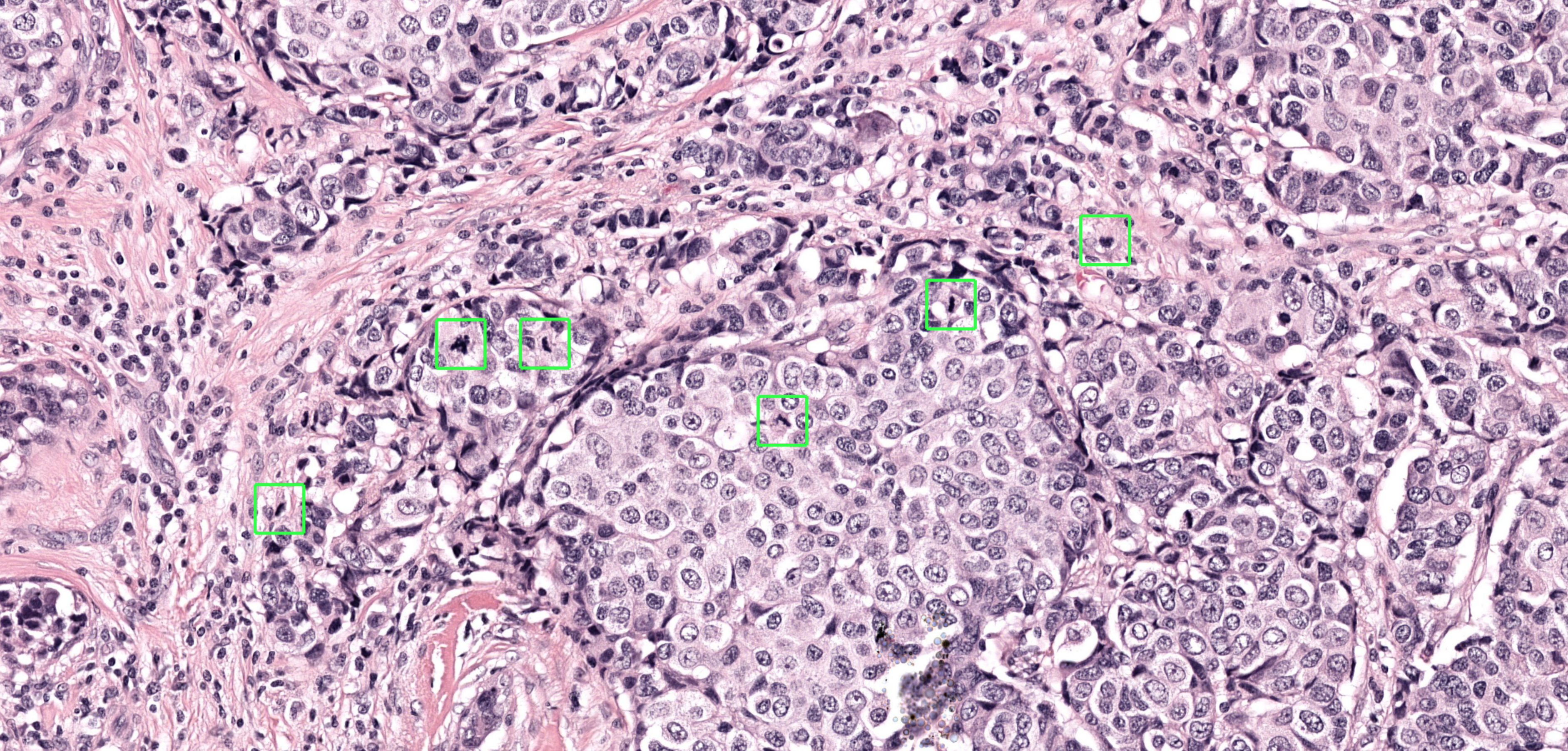 Le comptage des figures mitotiques dans les préparations de lames histologiques est une tâche fastidieuse et subjective dont la reproductibilité est faible. La solution de détection des mitoses alimentée par l’IA permet aux laboratoires de mettre en œuvre un protocole plus harmonisé et plus efficace pour la découverte de biomarqueurs et les études de développement de médicaments, améliorant ainsi la qualité et la normalisation des résultats. En mettant en évidence les figures mitotiques dans les lames d’hématoxyline et d’éosine (H&E) avant que les dossiers ne soient ouverts pour examen, l’algorithme d’Aiosyn améliore considérablement l’efficacité de l’analyse des mitoses, un biomarqueur essentiel pour l’évaluation de la croissance des tumeurs.