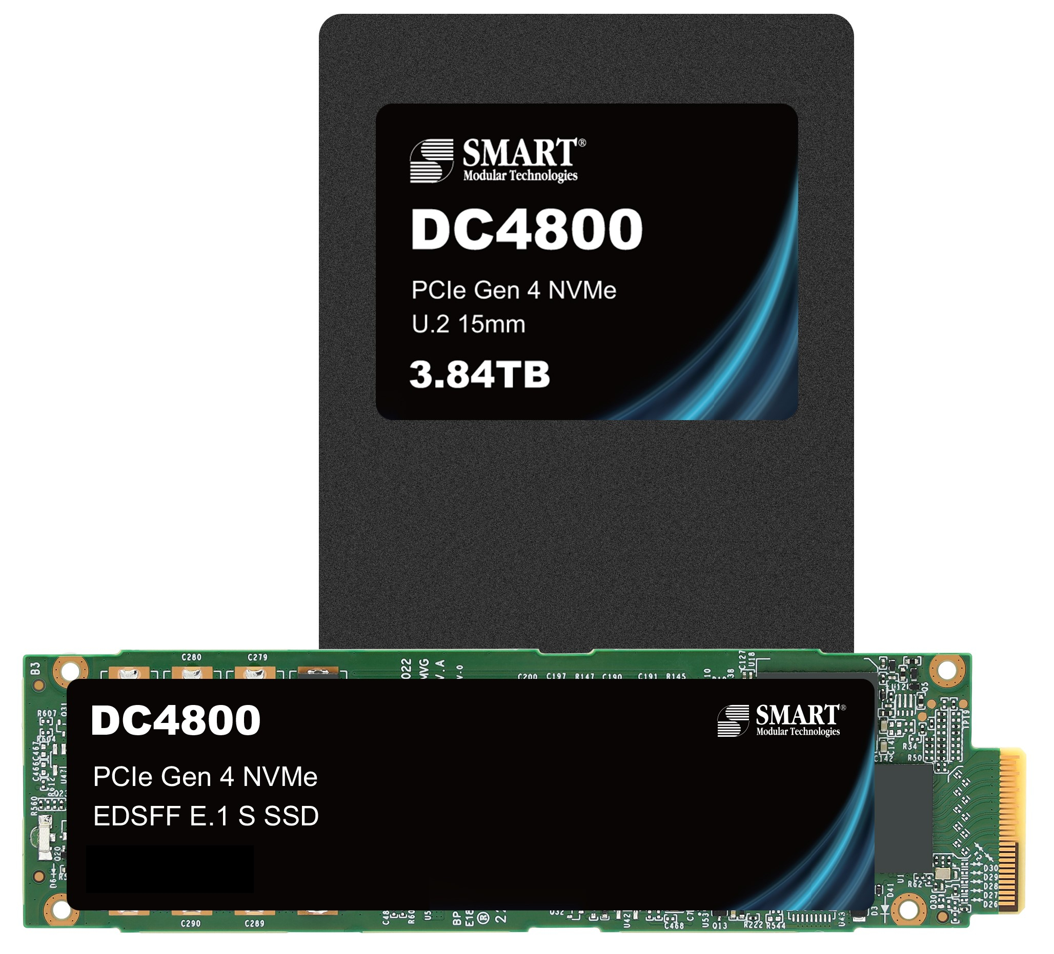 SMART’s DC4800 represents a new class of high performance, power efficient, data center SSDs. This family of PCIe Gen 4 data center class drives was designed for compliance with the OCP NVMe data center storage standards and are available in capacities up to 7.68TB in U.2 and E1.S form factors.