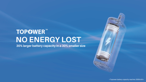 常见的无需充电的电子烟通常能支持抽吸2500~3000口,电池容量为950毫安时。但采用TOPOWER的一次性电子烟能提供两倍的抽吸次数,并配备大容量的2000毫安时电池,而电池尺寸几乎未变。大容量的2000毫安时电池支持连续6000口的电子烟抽吸体验。这意味着消费者不需要在吸烟过程中寻找充电线并充电。此外,这种电池技术还确保了其生命周期内的稳定输出,因而可以避免口感变淡和燃烧的味道等问题。这些问题的根源在于电池电压变动,长期以来饱受电子烟用户诟病。