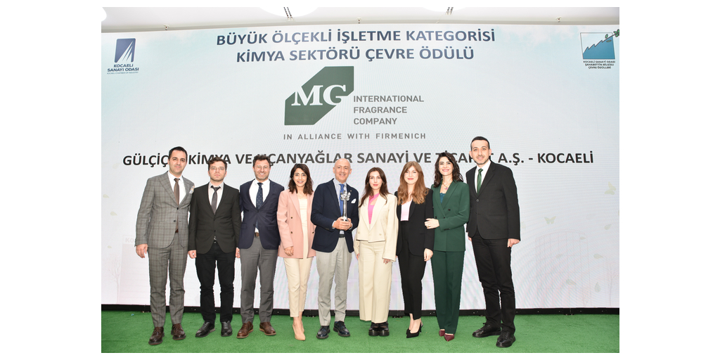 Diese Anerkennung wurde dem Unternehmen angesichts seiner umweltbewussten Projekte und seines Engagements für nachhaltige Produktionspraktiken zuteil. Aslan Gülçiçek, CEO von MG International Fragrance Company, nahm den Preis von Hasan Tahsin Tuğrul, dem Vorsitzenden der Versammlung der Industriekammer Kocaeli, dankend entgegen. Die Industrie- und Hafenstadt der Provinz Kocaeli steht im Mittelpunkt wichtiger Verkehrsnetze, die Europa mit Anatolien und dem Nahen Osten verbinden.