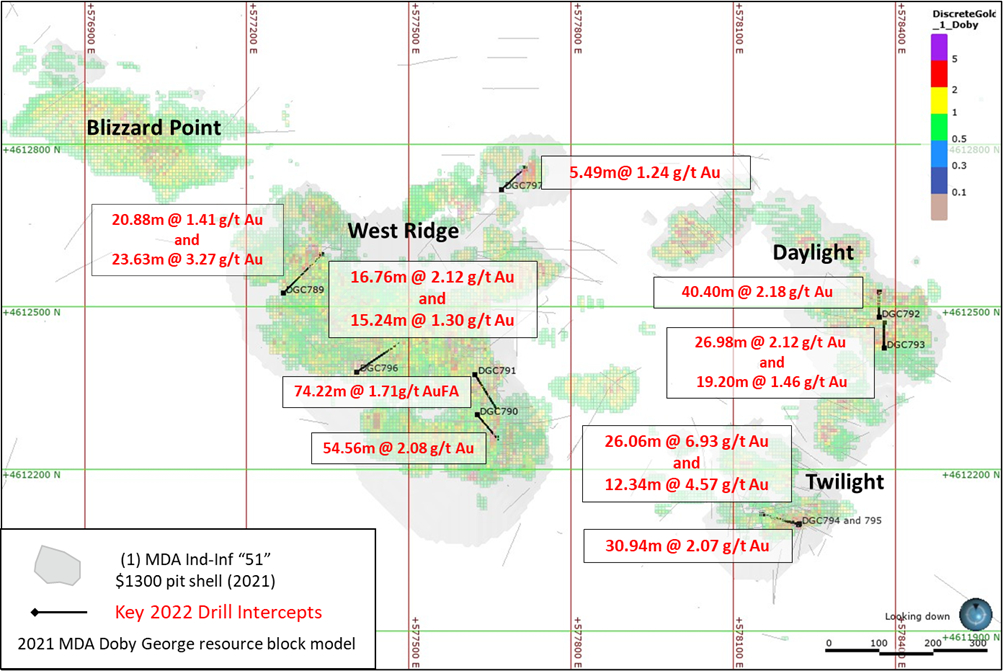Western Exploration CEO, Darcy Marud, commented: "It's an exciting time for the Doby George deposit following our exploration success in 2022. In 2022, the exploration team drilled nine holes with the goal of further delineating and advancing the existing mineral resource at the Aura Project. Doby George hosts 407k Gold ounces in the indicated category (12.9k tonnes at 0.98 g/t) and 119k Gold ozs in the inferred category (4.99k tonnes at 0.73 g/t).