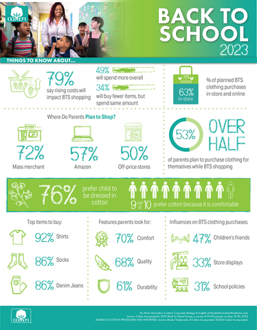 Cotton Incorporated’s 2023 Back to School Survey shares that by choosing cotton for Back-to-School shopping needs, the benefits are: