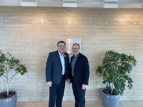 The latest partnership between Hestan and Johnson & Wales University showcases their continued collaborative effort to invest in the futures of students pursuing culinary arts. Pictured are Basil Larkin, SVP of Sales, and Steve Shipley, Resource Development at Johnson & Wales University. (Photo: Business Wire)