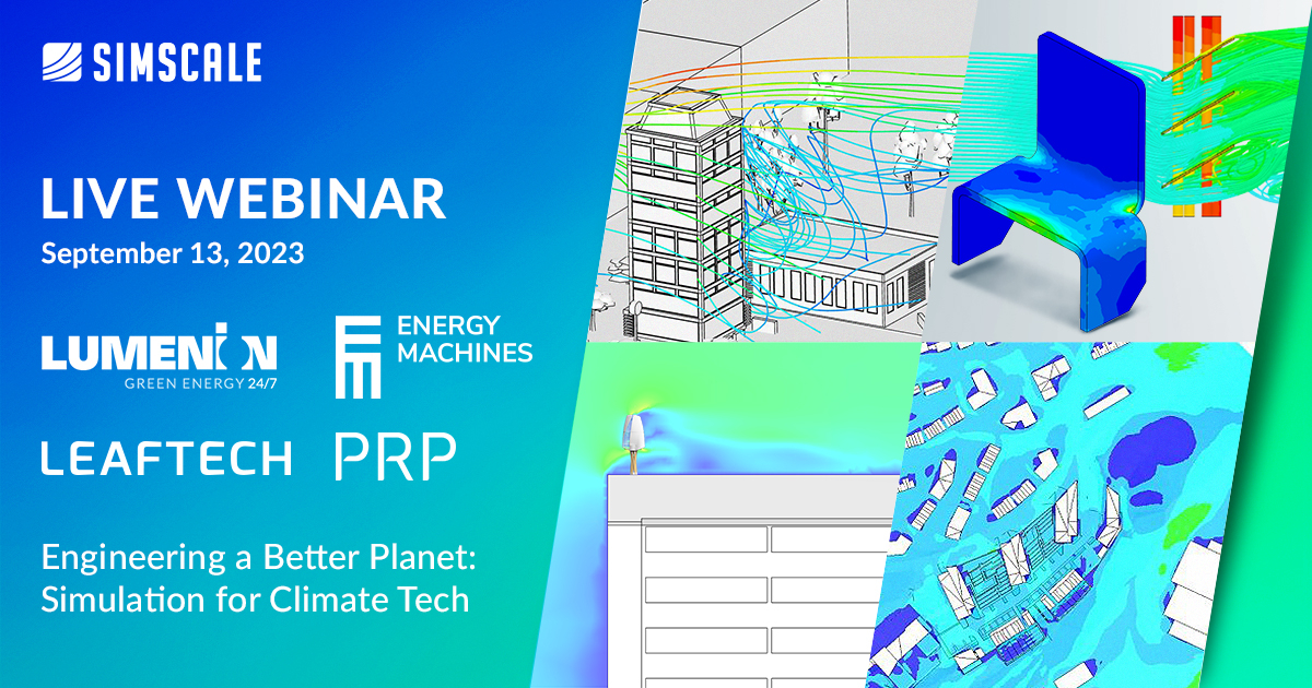 SimScale has partnered with leading engineering firms developing innovative climate technologies and will be hosting a free webinar, Engineering A Better Planet - Simulation for Climate Tech, on September 13, 2023.