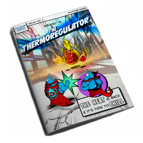 Dewey takes center stage in a first-ever comic book series crafted by the Multipure Comics Group. Within the pages, Dewey embarks on heroic quests shielding the innocent and vanquishing malevolence with unparalleled prowess. In the inaugural issue, Dewey showcases his extraordinary power over temperature regulation, utilizing water's unique ability to stabilize body temperatures and thwarting the plans of the malevolent Overheater, a flame who attempts to foil a city marathon by overheating the runners.