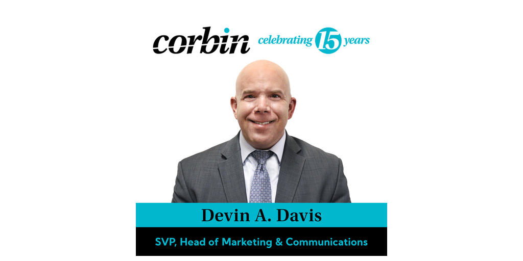 Devin Davis, SVP, Head of Marketing and Communications commented, “I’m excited to leverage my deep perspective and experience, as well as my passion for driving key strategic initiatives through thoughtful and innovative marketing programs to add to the tremendous growth Corbin continues to experience. As I have gotten to know Corbin through the due diligence process and, having met with many of our team members, it is clear to me that we are a unique capital markets advisory firm with a differentiated client value proposition. I look forward to adding value as we advance our growth strategy and drive impact for our clients, partners, and employees.”