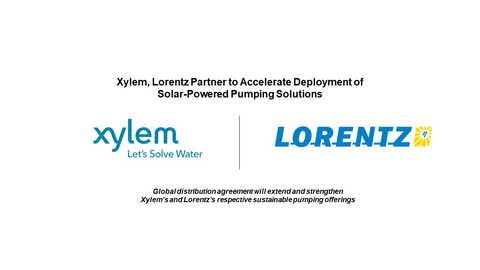 WASHINGTON--(BUSINESS WIRE)--Xylem Inc. (NYSE: XYL), azienda leader nel settore delle tecnologie idrauliche, e LORENTZ, azienda tedesca produttrice delle pompe idriche a energia solare, hanno oggi annunciato l'inizio di una collaborazione per la distribuzione con l'obiettivo di espandere la disponibilità in tutto il mondo dei sitemi di pompaggio idrico a base di energia solare. Queste soluzioni sostenibili sono spesso usate nel campo agricolo, per l'irrigazione e altre applicazioni per l'acqua, permettendo a chi gestisce tali processi di raggiungere i propri obiettivi per la decarbonizzazione riducendo al tempo stesso i costi operativi.