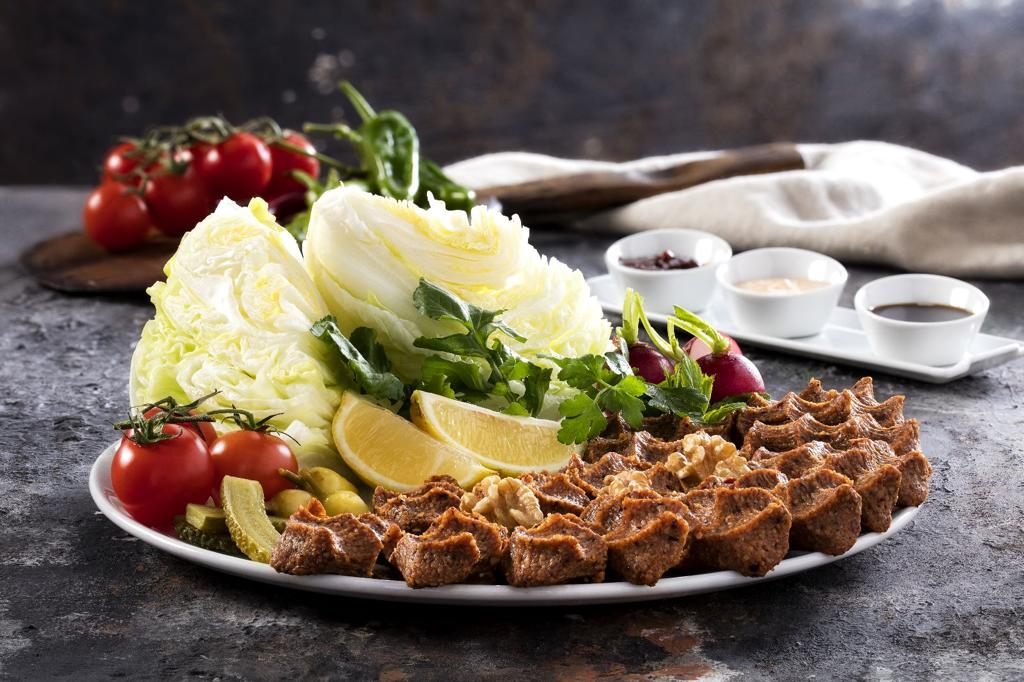 Les Chee Koeufte de Komagene sont préparés selon des normes extrêmement élevées. Du boulgour, moulu dans des moulins à pierre, est mélangé à l'isot réputé de Kahramanmaraş et à 21 autres variétés d'épices, enrichies de noix, d'amandes et de noisettes. La Base de Saveur de Komagene utilise une technologie avancée pour pétrir le cig kofte de manière traditionnelle, offrant une alternative sans viande qui fait écho aux régimes végétaliens du monde entier.