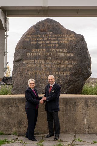 « L'Église anglicane a d'importantes racines irlandaises, et encourage vivement la Fondation du parc du Monument irlandais de Montréal à commémorer comme il se doit les victimes de la grande famine qui reposent à la Roche noire. Les archives montrent que de nombreux anglicans ont apporté de la nourriture et des médicaments aux malades, et que deux d'entre eux y ont même laissé leur vie en 1847 », a déclaré l'évêque anglicane de Montréal, Mary Irwin-Gibson. « Voilà pourquoi nous sommes ravis de faire don à la Fondation de la parcelle de terre sur laquelle se trouve la Roche noire. »
