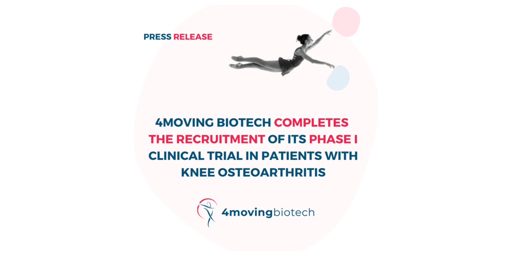 4MOVING BIOTECH ANNONCE LA FIN DU RECRUTEMENT DE SON ESSAI CLINIQUE DE PHASE I CHEZ DES PATIENTS ATTEINTS D’ARTHROSE DU GENOU