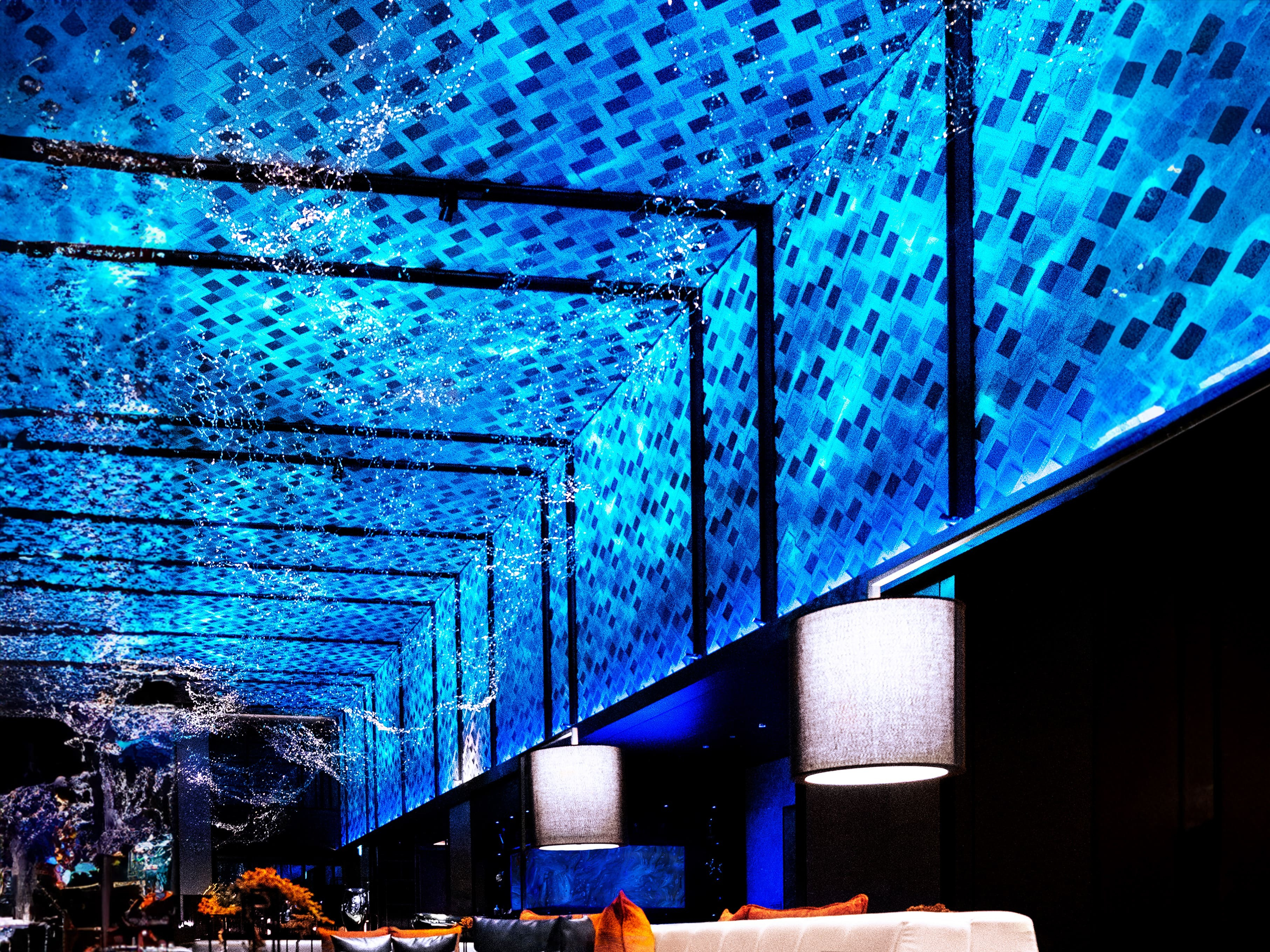 The winter holidays are an especially magical season to visit mesm Tokyo, which embodies a cutting-edge style art, music and modern Japanese culture. During this period, the art pieces at the entrance will be enveloped in midnight blue. The 16th-floor lobby will also be bathed in midnight blue lighting, with ceiling art swaying to the rhythm of high-quality music, creating a fantastical "BLUE FANTASY" reminiscent of the ocean surface.