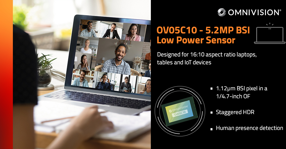 SANTA CLARA, Calif.--(BUSINESS WIRE)--OMNIVISION, a leading global developer of semiconductor solutions, including advanced digital imaging, analog, and touch & display technology, today announced the 5.2-megapixel (MP) OV05C10 image sensor, the first product specially developed for 16:10 aspect ratio notebooks. The sensor has staggered high dynamic range (HDR) and is suitable for mainstream and high-end laptops, tablets and IoT devices.