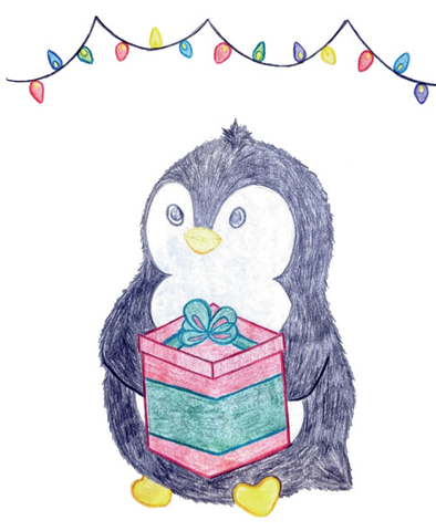 This year’s card features a festive penguin and was created by Mt. Juliet teenager Avery Lynch. In 2016, Avery, always a good student, told her parents that she couldn’t see the board in class – even from the front row.