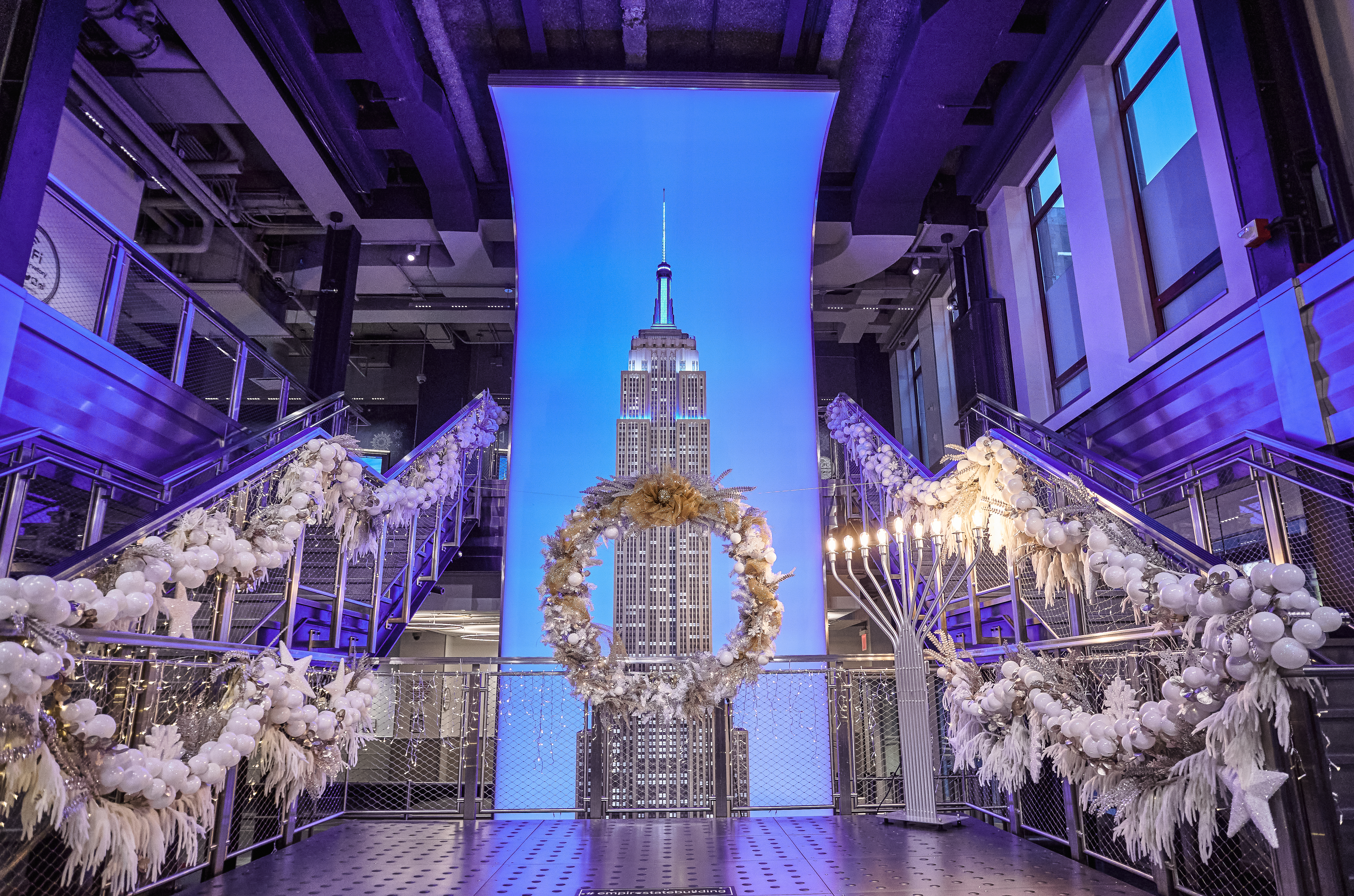 Adornos, guirnaldas, espumillón y lazos con detalles plateados y dorados adornan todo la experiencia del Observatorio, con una gran menorah brillante delante de la maqueta del edificio de dos plantas. Inspirado en el taller de Papá Noel, los visitantes pueden hacerse fotos navideñas en la planta 80 del Empire State Building en un rincón nevado con árboles de Navidad, regalos envueltos, una acogedora chimenea de fondo y la silla de gran tamaño de Papá Noel.