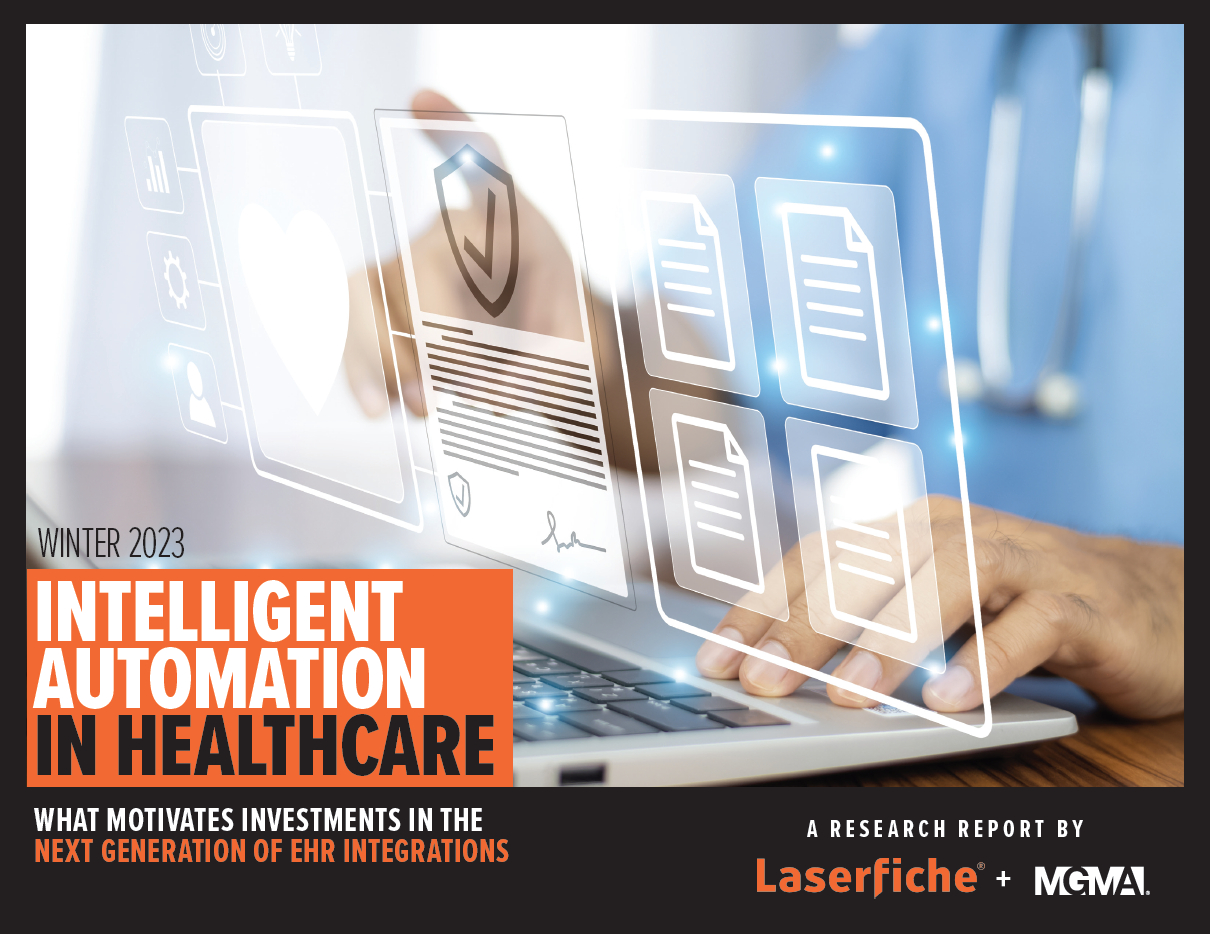 LONG BEACH, Califórnia--(BUSINESS WIRE)--Nova pesquisa do Medical Group Management Association (MGMA, Associação de Gestão de Grupo Médico) e da Laserfiche — o provedor líder de SaaS de gerenciamento inteligente de conteúdo e automação de processos de negócios — revela que as principais prioridades da maioria das empresas de serviços de saúde, quando considera-se as tecnologias integrativas, são a eliminação do trabalho manual, a mitigação do esgotamento dos médicos/trabalhadores e a economia de tempo.