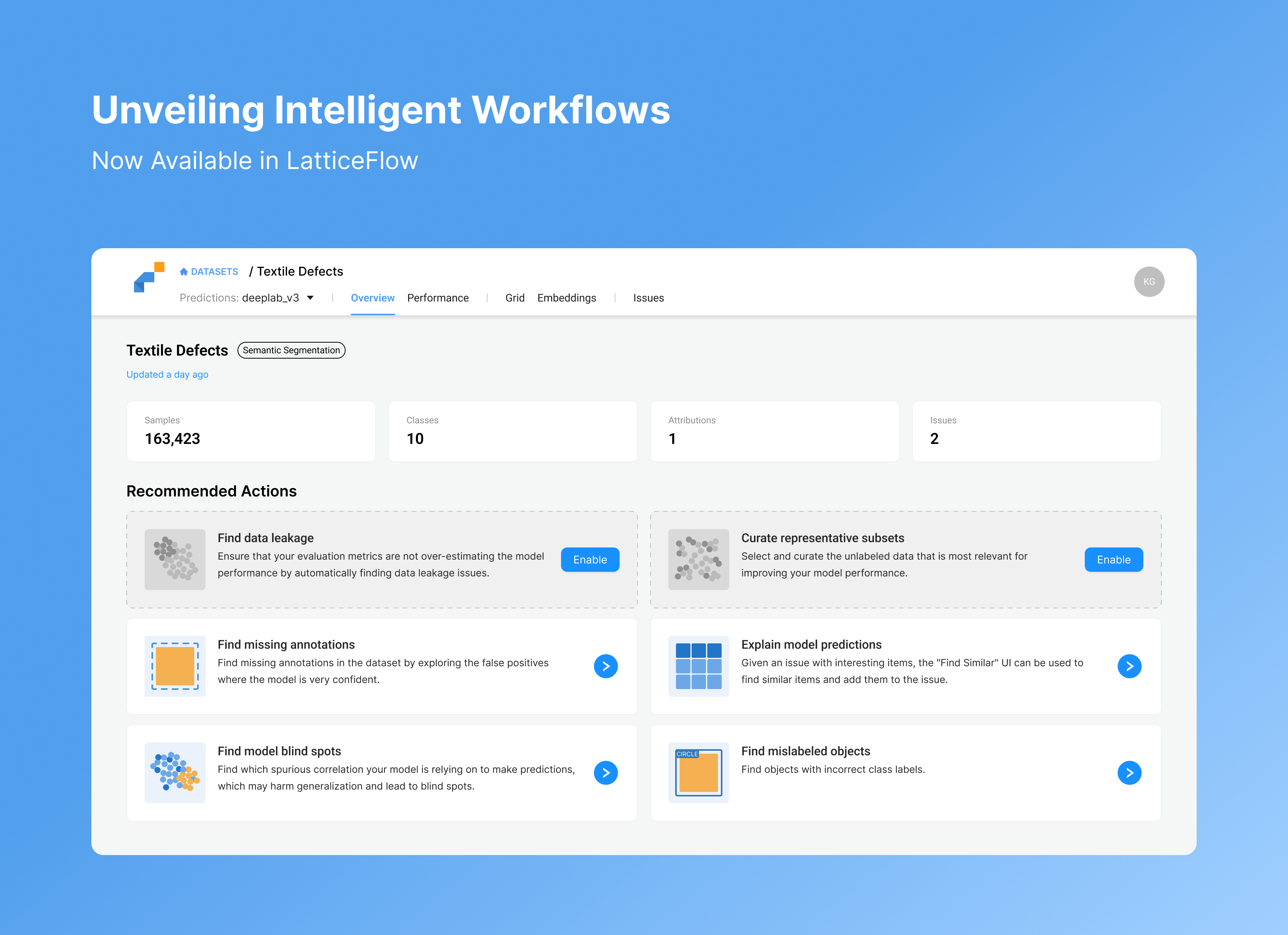 ZURICH--(BUSINESS WIRE)--LatticeFlow, la plateforme d’IA de nouvelle génération permettant aux équipes des entreprises de créer une IA performante, sûre et fiable à grande échelle, a le plaisir d’annoncer le lancement d’Intelligent Workflows, qui va aider les ingénieurs responsables de l’apprentissage automatique à rectifier proactivement les erreurs et à garantir la fiabilité et la robustesse des performances des modèles d’IA qu’ils produisent. Cette technologie de pointe vise à révolutionner le secteur de l’IA en relevant l’un des défis les plus critiques auxquels sont confrontés aujourd’hui les ingénieurs chargés de l’apprentissage automatique.