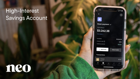 CALGARY, Alberta & WINNIPEG, Manitoba--(BUSINESS WIRE)--Neo Financial™ (Neo), a leading Canadian financial technology company, is helping Canadians reach their savings goals faster with a new 4% high-interest savings rate2 and smart, interactive digital tools to grow their money.