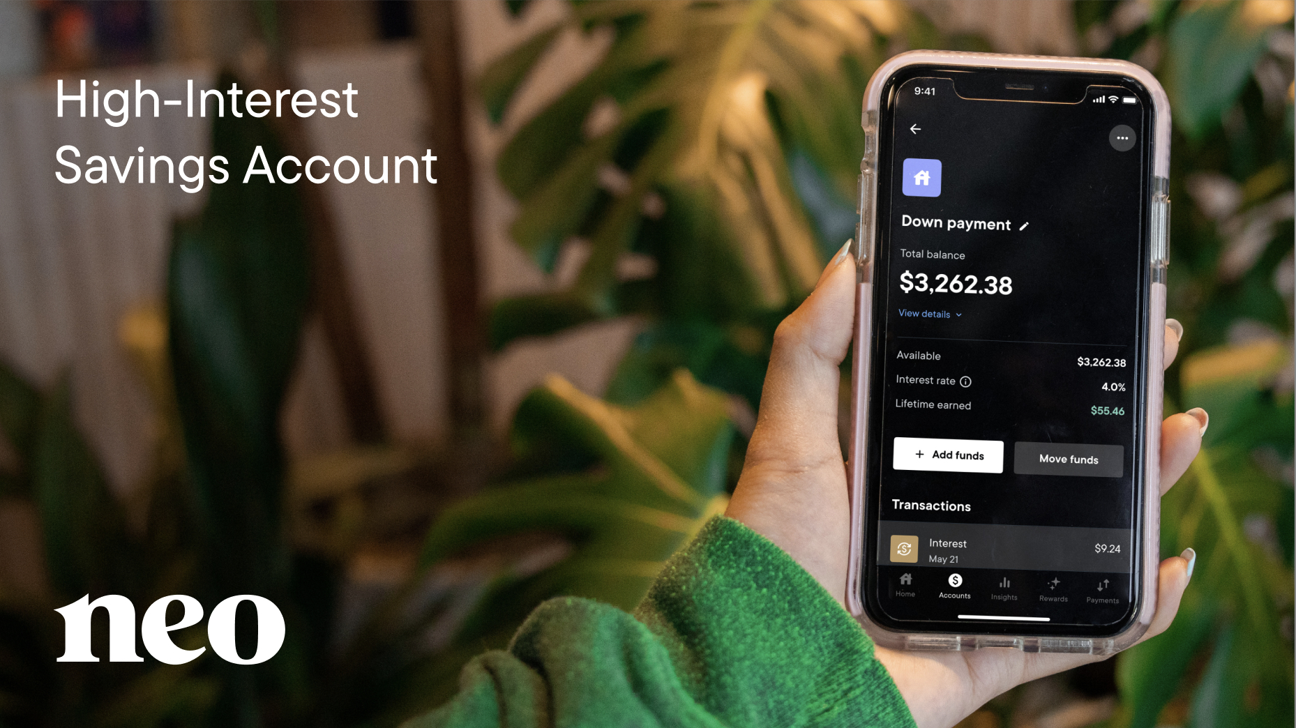 Unlike the Big 5 banks promising high promotional interest rates that don’t last, the Neo High-Interest Savings account (HISA) offers 4% interest2 with no minimum deposits and no commitments—plus intuitive tools and real-time insights to help customers reach their savings goals sooner.