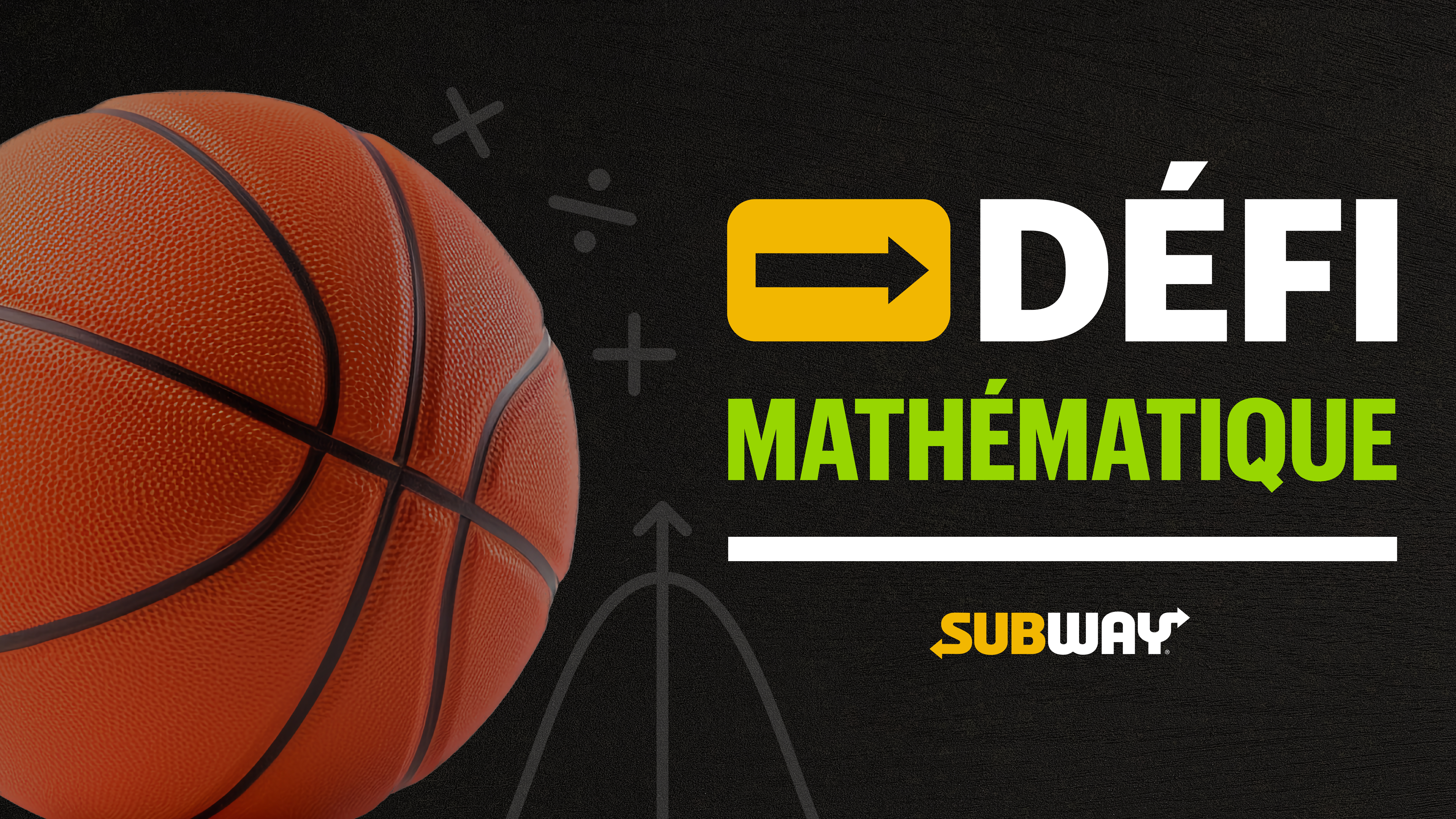 AUCUN ACHAT REQUIS. Débute le 13 décembre 2023 à 9 h HE. Se termine le 19 décembre 2023 à 23 h 59 HE. Sélection et/ou tirage au sort de la personne gagnante le 20 décembre à 10 h 00 HE, à Toronto (Ontario). Ouvert aux résidents légaux du Canada ayant atteint l’âge de la majorité dans leur province ou territoire de résidence. Un (1) prix : un voyage pour deux (2) personnes au match des Raptors de Toronto au Scotiabank Arena, le 18 janvier 2024. Comprend le transport aller-retour à Toronto, deux (2) nuits à l’hôtel, deux (2) billets dans la section inférieure pour le match, et une carte-cadeau prépayée d’une valeur de 1 000,00 $ CA (VAG : 5 000 $ CA). Limite de une (1) participation par personne. Les participants peuvent courir la chance de gagner le prix en devinant le nombre de sandwichs qui pourraient entrer dans le Scotiabank Arena (surface de jeu et gradins), et en indiquant leur réponse dans les commentaires de la publication Instagram de SubwayMD Canada liée au concours ou en envoyant un courriel à subwaymathchallenge@veritasinc.com. La personne participante dont la réponse se rapproche le plus de la bonne réponse gagnera, et toute égalité sera résolue par tirage au sort. Les chances de gagner dépendent du nombre de participations admissibles reçues et de l’exactitude de la réponse. Pour gagner, la personne doit répondre correctement à une question d’aptitude mathématique. Règlement complet et détails du prix au https://www.subway.com/fr-ca/legal/terms-of-use#id_grouptitle_ae91c.