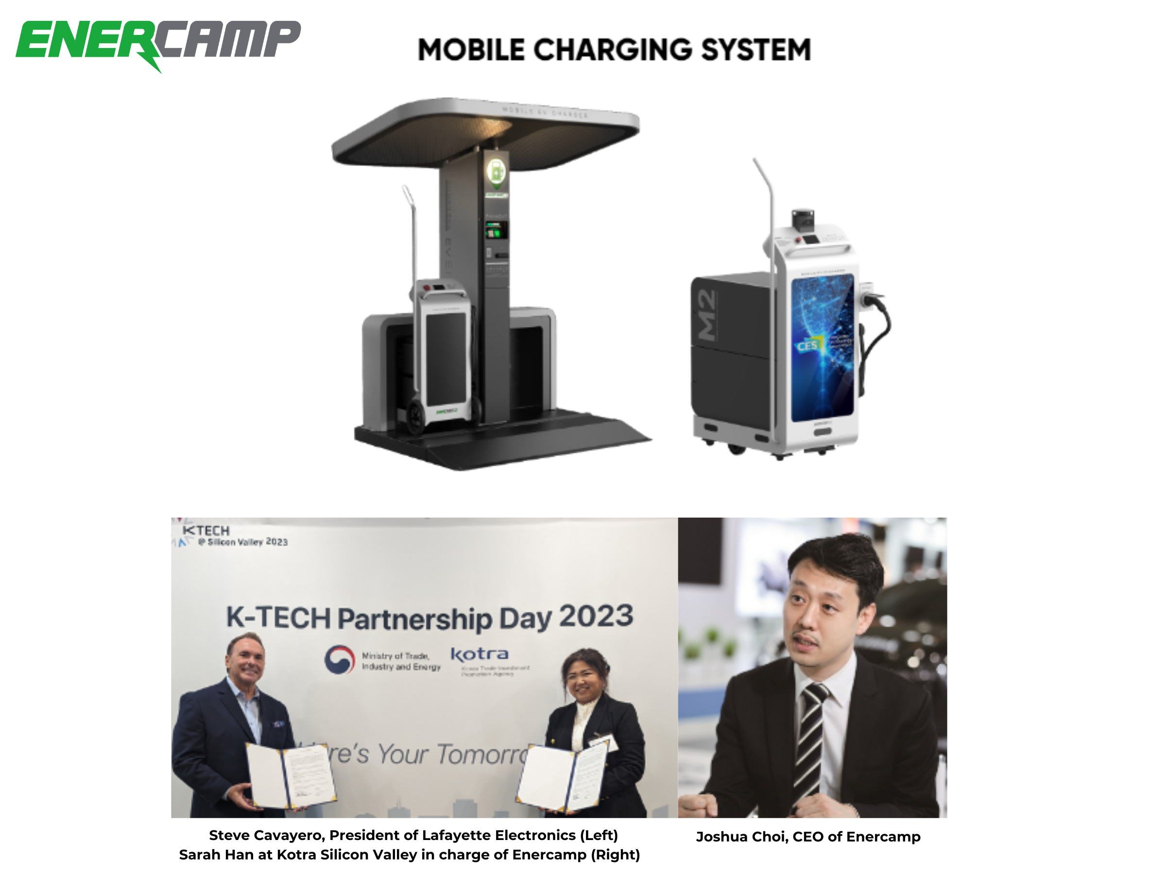 SAN JOSE, Calif.--(BUSINESS WIRE)--Enercamp, Inc. made a significant impact at K-Tech Partnership Day 2023, held on December 4, 2023, at Kotra Silicon Valley, by introducing an upgraded mobile electric vehicle (EV) charging system.