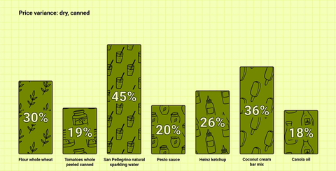 In addition to highlighting a 27% average price variance, Zitti’s Order Guide report breaks down average price variances across suppliers for the following core products:
