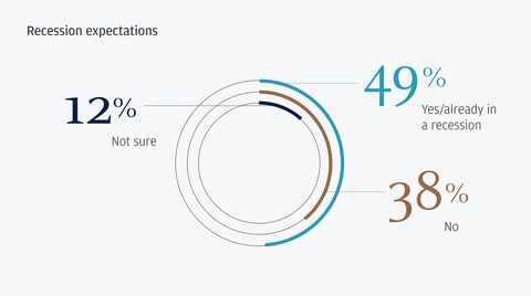 PARIS--(BUSINESS WIRE)--Measured optimism prevails as French business leaders continue to have a favorable outlook on the global (54%) and national (51%) economies. While 73% report rising costs due to inflation, up 17% from 2023, about half (49%) expect a recession in 2024, according to J.P. Morgan’s third annual France Business Leaders Outlook survey.