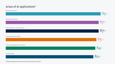 - Of those currently using or considering adopting AI, half are already applying AI to their business operations (51%) and their internal and external communications needs (50%).