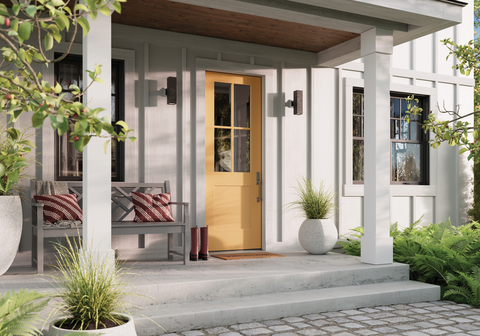 New options for Smooth-Star Shaker-style entry doors include flush-glazed half-lite 1-panel doors and sidelites, Impact-rated full-lite flush-glazed options, and door divider bar (DDB) and simulated divided lite (SDL) styles.