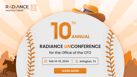 HOUSTON--(BUSINESS WIRE)--HighRadius, the leading provider of Autonomous Finance software for Order-to-Cash, Treasury, and Record-to-Report, announces the largest UNConference for the office of the CFO, Radiance 2024. It will take place from Feb 13 to Feb 14, 2024, at the home of the Texas Rangers, Globe Life Field Stadium in Dallas.