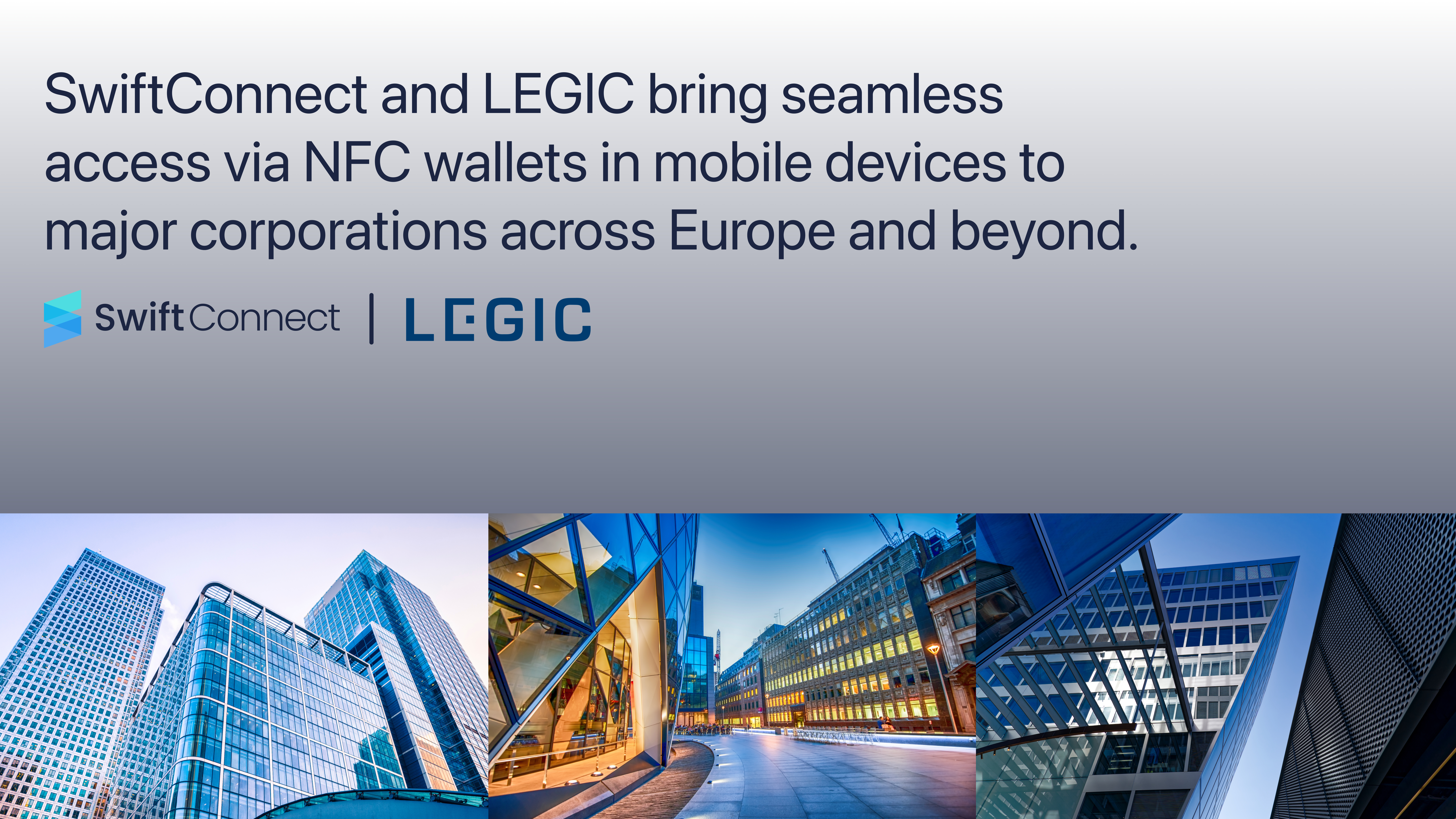 STAMFORD, Conn. and Zürich, Switzerland--(BUSINESS WIRE)--SwiftConnect, the leading provider of connected access enablement, and Swiss-based LEGIC Identsystems, a global leader in secure authentication, access management and IoT platform solutions, today announced a partnership to accelerate deployments of easy, hassle-free access using NFC wallets in mobile devices for major corporations across Europe and beyond. As an official LEGIC Partner, SwiftConnect is the first to enable corporate access via NFC wallets for LEGIC customers and its vast partner network – developers of readers, credentials, application software, and services.