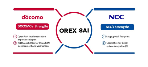 TOKYO--(BUSINESS WIRE)--NTT DOCOMO, INC. et NEC Corporation annoncent aujourd’hui leur intention de créer une coentreprise, OREX SAI, INC., le 1er avril, afin de fournir des solutions OREX Packages pour le déploiement mondial à grande échelle des services Open RAN.