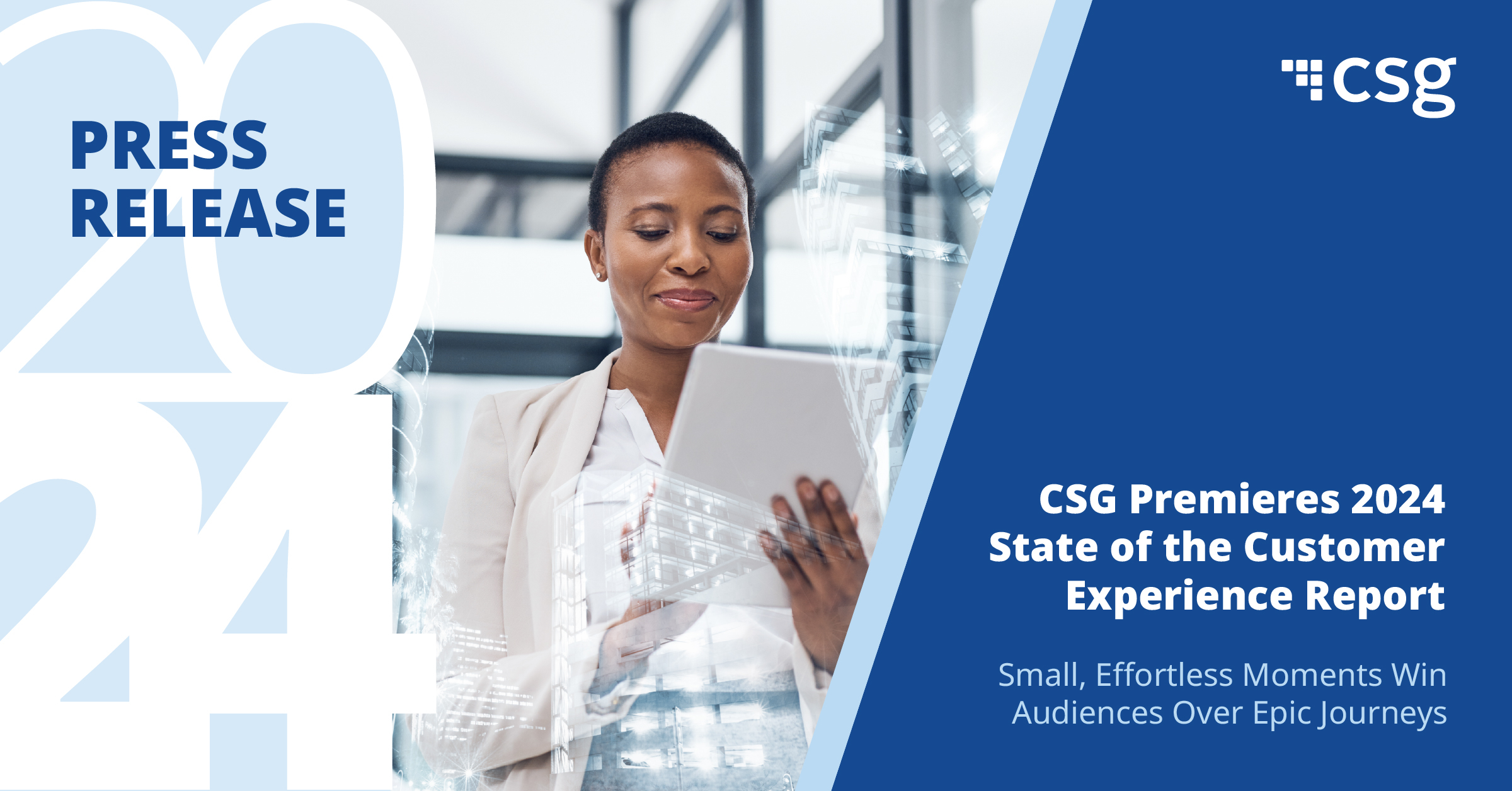 DENVER--(BUSINESS WIRE)--CSG ® (NASDAQ: CSGS), eine führende SaaS-Plattform, die Marken dabei hilft, einfache Erlebisse von Kunden und Mitarbeitern in außerordentliche Eindrücke zu verwandeln, hat heute den The 2024 State of the Customer Experience Report veröffentlicht. Gestützt durch Branchenrecherchen, interne Daten, Aussagen von Experten und Kundeninitiativen legt der Bericht überraschende Wendungen im Hinblick auf das CX-Playbook offen und bietet Marken praktische Strategien, um Kunden den roten Teppich für langfristige Loyalität auszurollen. Er richtet das Spotlight auf einen neuen Status quo: den Druck auf Markenexperten, den Kaufprozess von Kunden auf der Basis von Daten zu betrachten, um schneller einen Return on Investment (ROI) für ihre Projekte zu erwirtschaften.