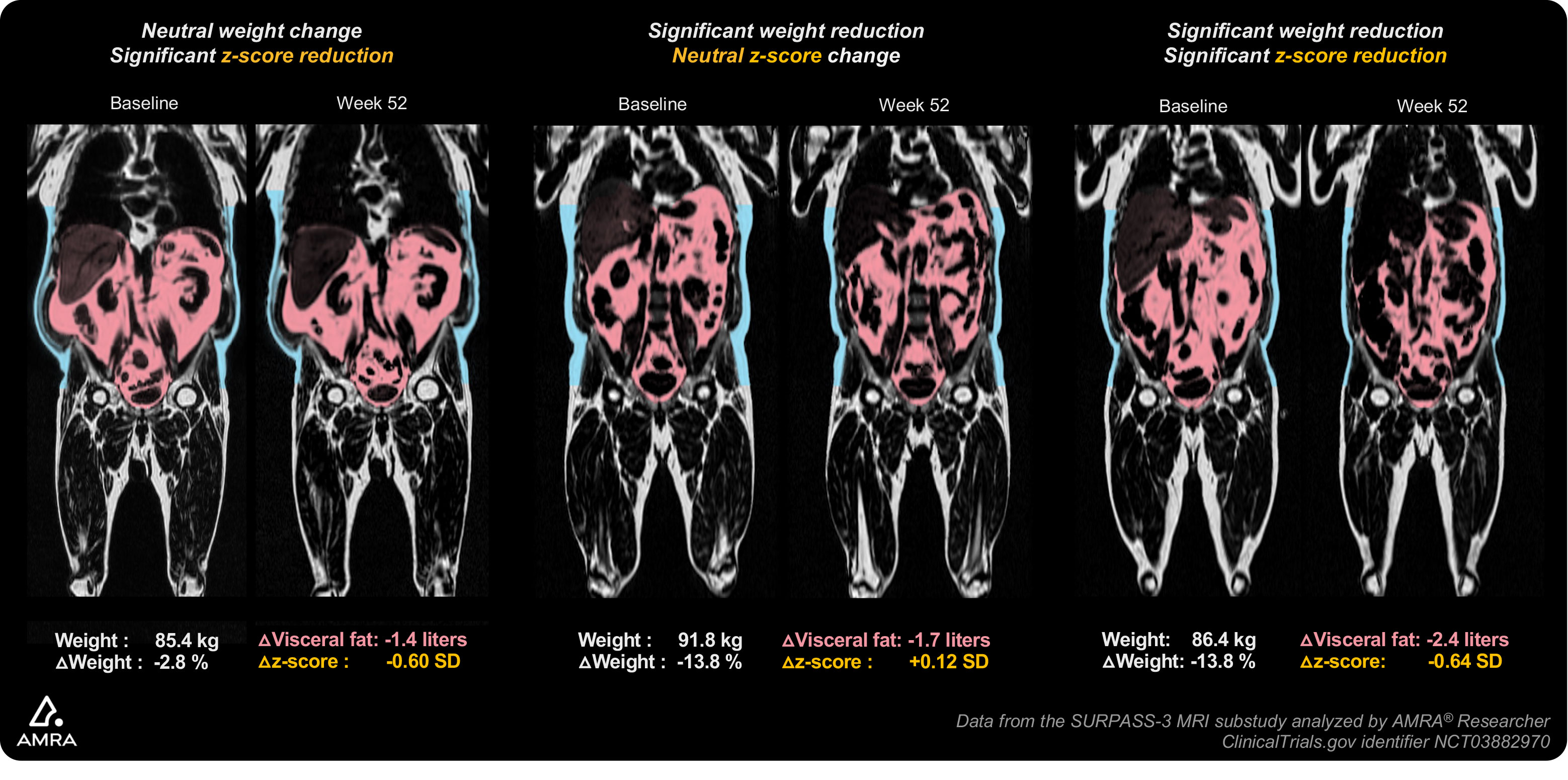 Innovatieve Fat Z-Score biomarkers van AMRA Medical tonen aan dat de behandeling met tirzepatide geassocieerd is met een potentieel gericht effect op visceraal vet en levervet