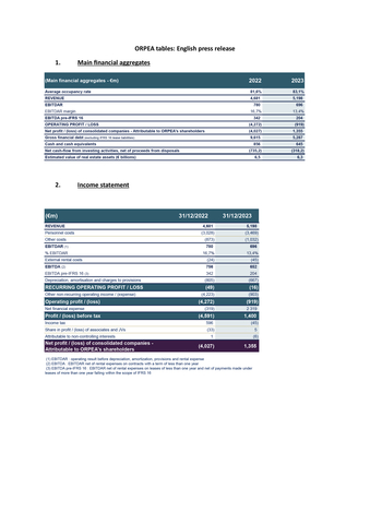ORPEA SA publishes its consolidated results for the year ended 31 December 20231, which were adopted by the Board of Directors on 16 April 2024.