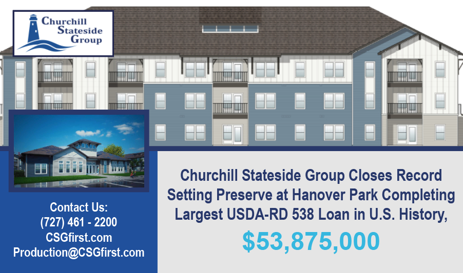 Churchill Stateside Group Closes Record Setting Preserve at Hanover Park Completing Largest USDA-RD 538 Loan in U.S. History, $53.8M