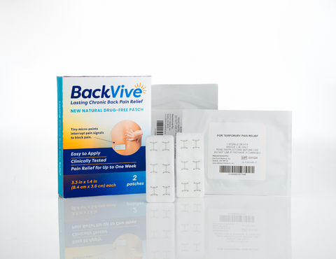 A new drug-free and convenient non-prescription over-the-counter (OTC) option – BackVive – is now available for people to treat their chronic back pain. The product was co-developed by renowned MD and successful medical entrepreneur, Dr. Ron Berenson, who has introduced several innovative healthcare products, and an orthopedic surgeon. The device is a simple adhesive patch that incorporates an array of tiny micro-points that act to relieve pain. In a clinical study, BackVive demonstrated significant pain relief in more than 90% of all participants, with some patients experiencing almost complete resolution of their pain. Additionally, the pain relief lasted for a week in most of the cases with only a single application of BackVive. This compares to the few hours of pain relief that occurs with use of a broad range of other non-prescription products, including medicated patches, ointments, gels, hot/cold remedies, and over-the-counter pills.