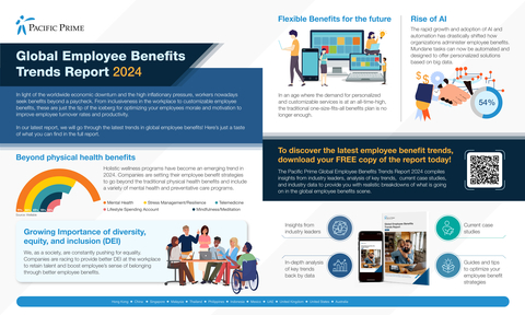 HONG KONG--(BUSINESS WIRE)--Global health insurance brokerage and employee benefits specialist Pacific Prime has released their 2024 Global Employee Benefits Trends Report. Catered to both HR professionals and corporations, the report offers insight into the current employee benefits landscape and tips on implementing the latest employee benefits trends to give employees a sense of belonging and improved job satisfaction. As such, the introduction of these new employee benefits trends will contribute to employee attraction and retention for employers.