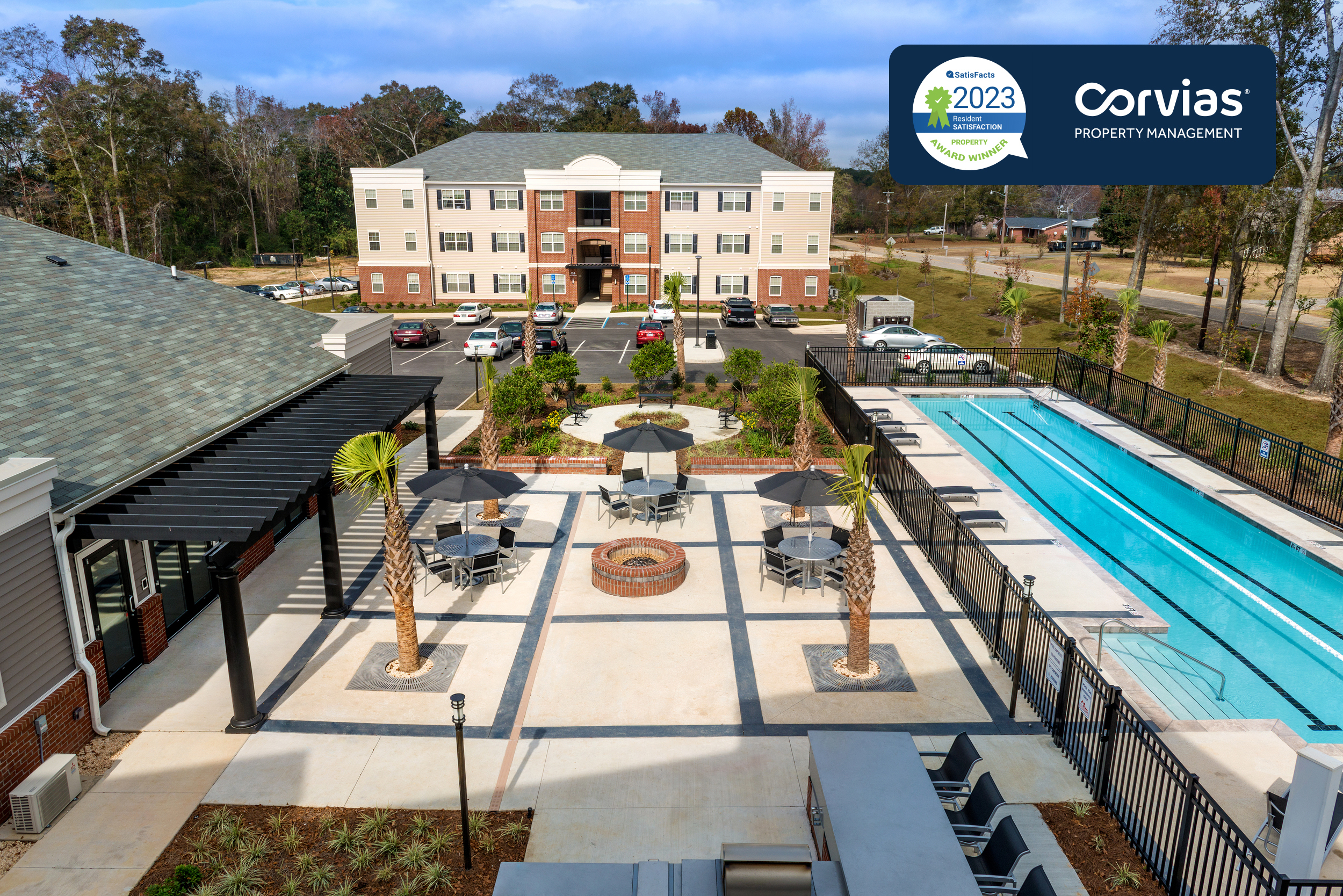 Corvias Property Management was awarded the SatisFacts “Community Award for 2023” for delivering exceptional student housing services at five Institutions: Abraham Baldwin Agricultural College, Alabama College of Osteopathic Medicine, College of Coastal Georgia, Purdue University, and the University of Notre Dame. Pictured is Summerfield Square at Alabama College of Osteopathic Medicine. (Photo: Business Wire)