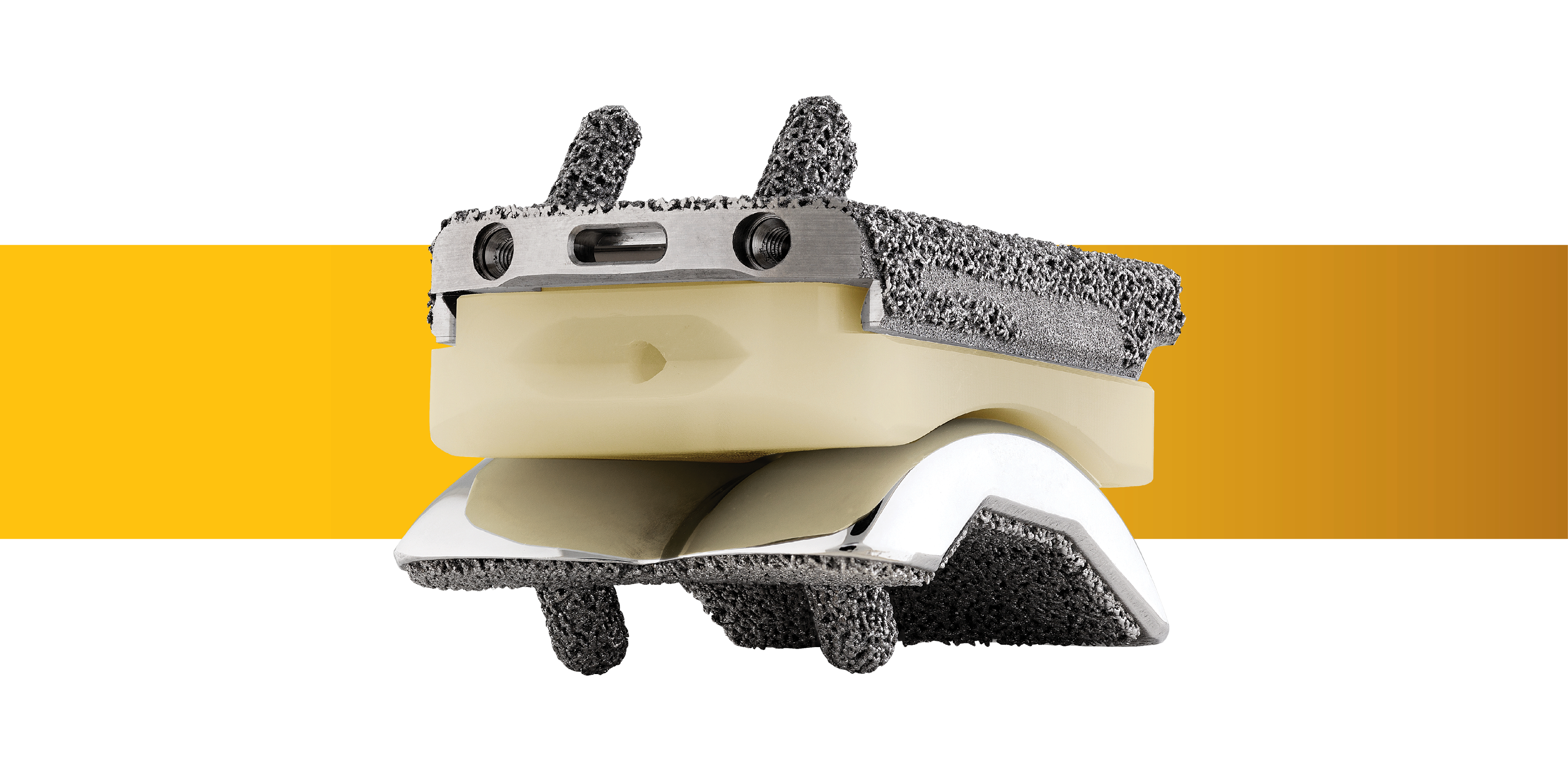 Het Infinity Total Ankle-systeem bestaat uit een tibiale tray van titaniumlegering, een taluskoepel van kobaltchroom en een inzetstuk van polyethyleen. Het hulpmiddel heeft een low-profile tibiaal implantaatontwerp. In de Adaptis 3D-geprinte totale enkelimplantaten 2 zijn poreuze metalen componenten verwerkt die strategisch zijn ontworpen om te dienen als contactoppervlak om de ingroei van gebeente te vergemakkelijken. 3* Gebleken is dat de Everlast sterk verknoopte polyethyleen inzetstukken, vermengd met vitamine E, de slijtvastheid tijdens het dragen verhogen. 4 De uitwisselbaarheid van de twee talusopties maakt het systeem veelzijdiger, om tegemoet te komen aan verschillende behoeften van patiënten.