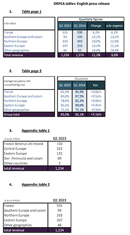 Revenue in Eastern Europe (Austria, Switzerland, Czech Republic, Slovenia, Croatia) also posted strong growth (+12.2%, of which +11.2% organic), to 233 million euros. The region's two main contributors, Austria and Switzerland, benefited from a combination of higher occupancy rates and major rate revisions. The area's occupancy rate rose by 3.4 points over the period.